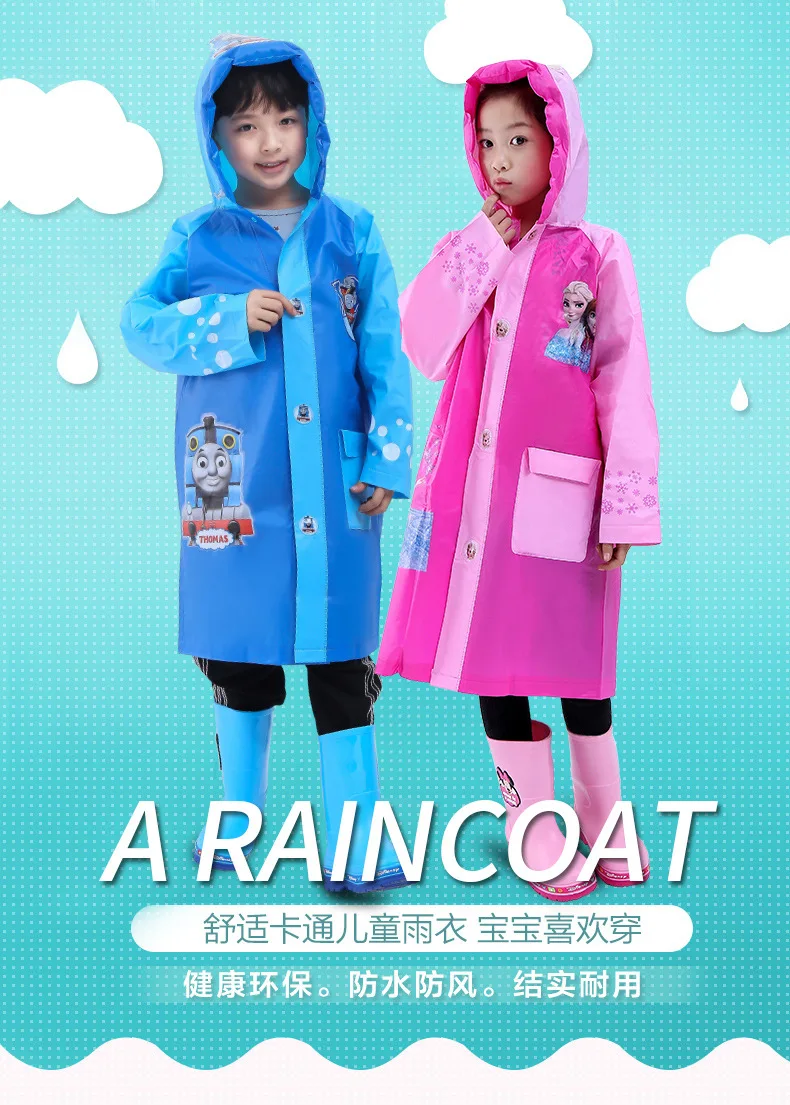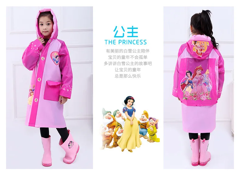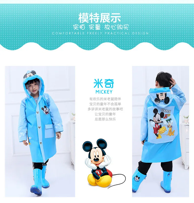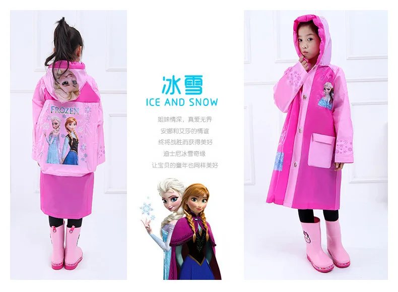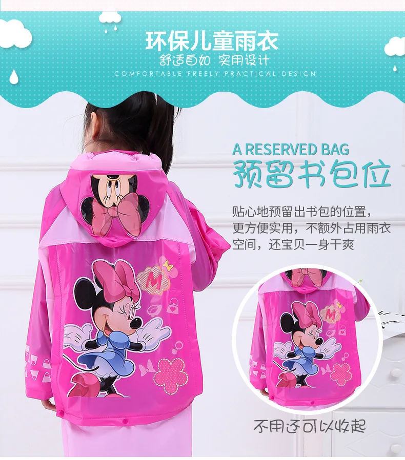 Disney Raincoat for Children Cartoon Frozen minnie mickey Kids Girls Rainproof Poncho Boys Rainwear Rainsuit school