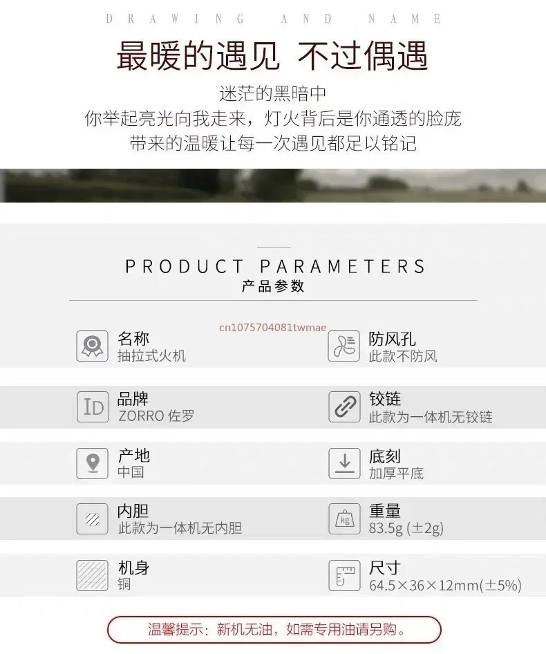 New Retro Zorro Pure Copper Match Kerosene Lighter Pull-out Ignition Lighter Cigarette Tool Men's Gift Outdoor Ignition Tool