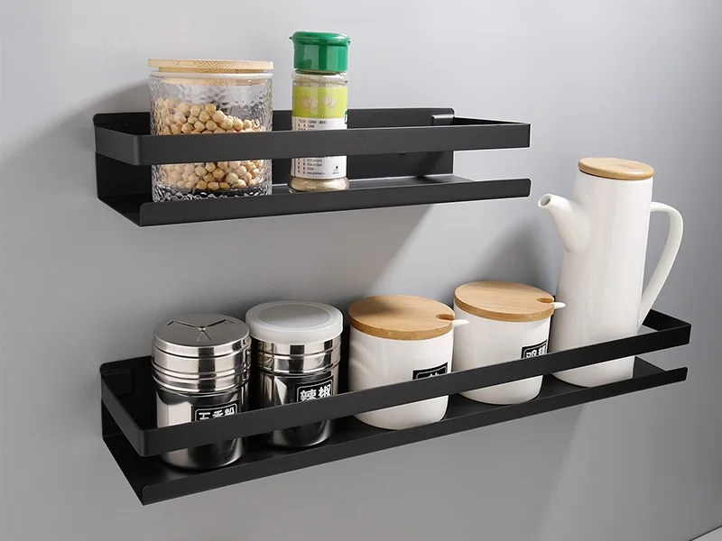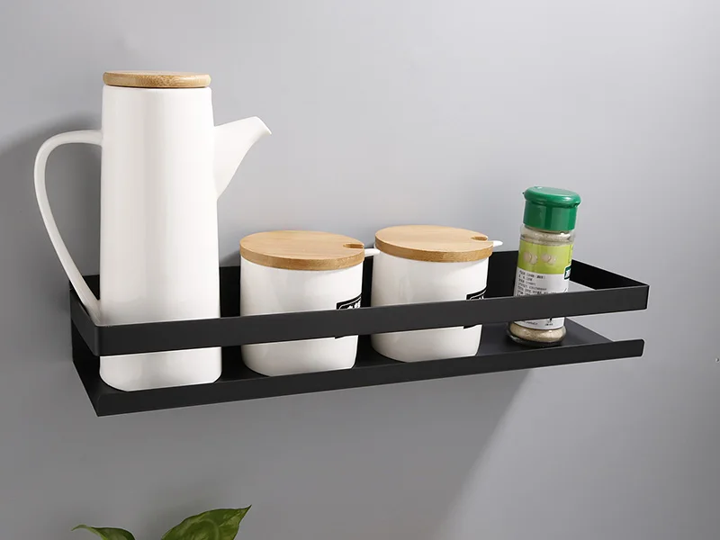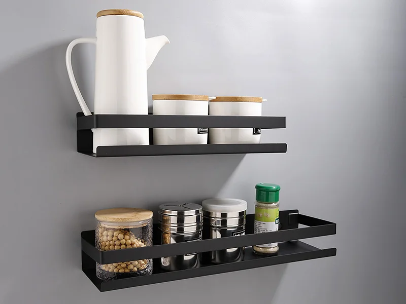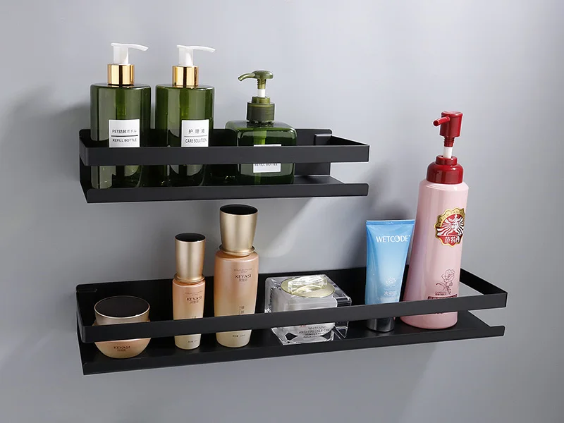 Stainless Steel Bathroom Shelf Black Shower Shampoo Storage Rack Adhesive Suqare Kitchen Bathroom Shlef 20cm 30cm 40cm 50cm